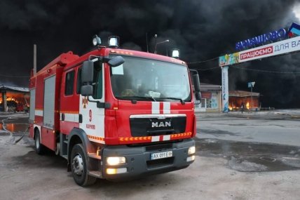 Продолжается ликвидация пожара на рынке "Барабашово" в Харькове.