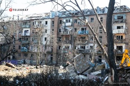 Уже 23-й день враг неустанно обстреливает жилые массивы населенных пунктов украинского государства. Последствия уничтоженной инфраструктуры, находящейся на территории столичного района Куреневка, после падения обломков российской ракеты удалось зафиксировать корреспонденту "Телеграфа" Евгению Загороднему.