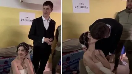 Особенно поразили молодожены, даже сыгравшие в бомбоубежище свою свадьбу. Эта история тронула страну. Видео активно распространяется в соцсетях.