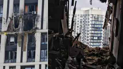 Вместо стены — сплошная дыра: обломок дрона попал в жилую многоэтажку в Киеве (эксклюзивные фото)