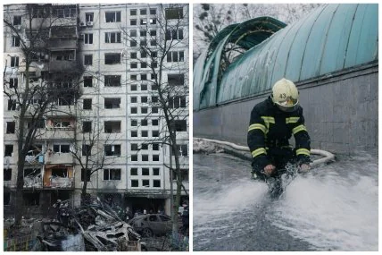 В результате ночной ракетной атаки по Киеву в Днепровском районе обломками сбитой ракеты был поврежден многоэтажный жилой дом. Кроме того, там пострадала водопроводная сеть. Это привело к затоплению подвала дома и подземного перехода, последствия ликвидируют спасатели.