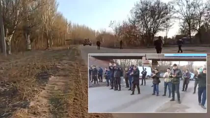 Без оружия остановили русский танк: героический поступок мэра и жителей Днепрорудного попал на видео
