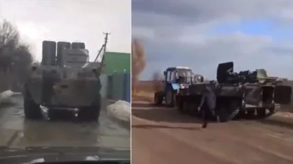 В сети появляются видео, как украинцы угоняют себе во дворы российские БТРы.