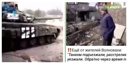 В этот раз на одном из пророссийских каналов ("днр") в сети загрузили видео с местным жителем Волновахи, который утверждает, что украинские военные якобы на танках обстреливали местные дома. Отметим, что многострадальный город в Донецкой области был полностью уничтожен именно российскими захватчиками.