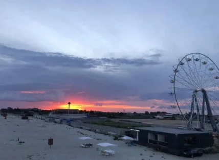 Даже очень популярные в Лазурном места — колесо обозрения у моря и памятный знак с которым многие фотографировались — пребывают в запустении.
