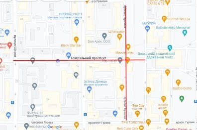 Основной удар пришелся на сосредоточие Театрального проспекта и бульвара Пушкина. Возле театра оперы и балета зафиксирован один из мощных прилетов, оставивший после себя большую воронку. Еще одна обнаружилась в дворе многоэтажки неподалеку.
