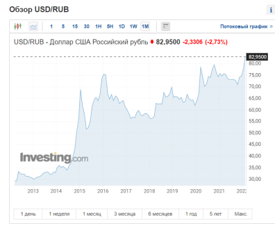 Если посмотреть на долгосрочный график курса рубля, то видно, что впервые он стал падать в 2014 году, когда Россия начала агрессию против Украины. Теперь же он достиг исторического максимума.