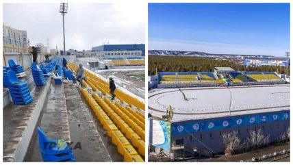 В telegram-канале truexanewsua написали: "Трибуны стадиона в Якутске демонтируют из-за схожести с цветами украинского флага. Маразм крепчал."