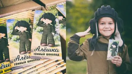 После истории с украинской бабушкой, вышедшей к солдатам с флагом СССР, а после раскритиковавшей зверства оккупантов, россияне используют для пропаганды только своих граждан. К примеру — мальчишку Лешу из Белгородской области, которому нравится военное дело и смотреть, как танки идут в Украину. На днях по мотивам его фото в россии выпустили новую шоколадку "Алешка".