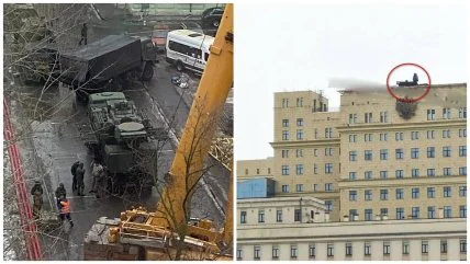К слову, ЗПРК "Панцирь-С1" — это оружие наземного и морского базирования. В характеристиках ни слова не сказано о том, что его можно поднимать краном на высотные здания и размещать на крышах. В сети также поделились видео, на котором видно, что ЗПРК подняли на крышу именно при помощи крана. Позже выяснилось, что административное здание расположен в 2 км от красной площади и кремля.