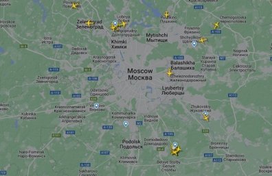 По данным специальных мониторинговых сервисов, в небе над аэропортом нет ни одного самолёта.