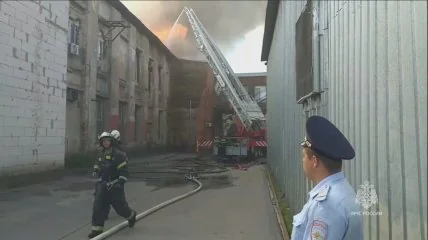 "Тушение осложняет высокая пожарная нагрузка склада, поскольку внутри находятся лакокрасочные изделия, кроме того сложная планировка здания", — жалуются пожарники.