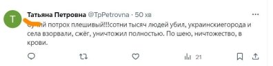 Пользователи сети резко отреагировали на такое сравнение: "С*чий потрох плешивый!!!сотни тысяч людей убил, украинскиегорода и села взорвали, сжёг, уничтожил полностью. По шею, ничтожество, в крови."; "С*ка лживая".