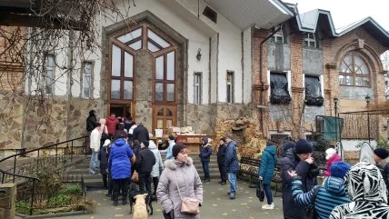Несмотря на то что продуктовые наборы религиозная община, в которой служит Станислав (не будучи диаконом или пастором), раздает с 10:00, уже за полтора часа к воротам храма начинают, как горные ручьи, стекаться люди. 16 декабря раздавали, например, свежий хлеб, фасоль и рыбные консервы.