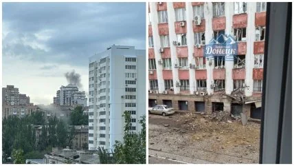 В пятницу, 28 июля, во временно оккупированном Донецке прозвучали взрывы. Над центром города были видны клубы черного дыма, вероятно "прилетело" в здание местного "министерства внутренних дел".
