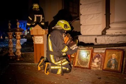 Там рассказали, что российская ракета попала прямо в центральный алтарь, частично разрушено здание собора, перекрытие трех нижних этажей, значительно повреждена внутренняя отделка и иконы, полностью уничтожены служебные помещения нижней части собора. Сразу после попадания начался пожар, который спасатели быстро локализовали и потушили. Пострадал охранник собора, его госпитализировали.