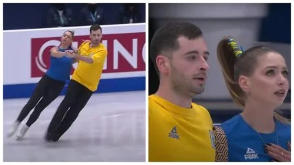 Украинский танцевальный дуэт Александра Назарова и Максим Никитин на фоне полномасштабного вторжения рф в Украину выступили на чемпионате мира по фигурному катанию во Франции.