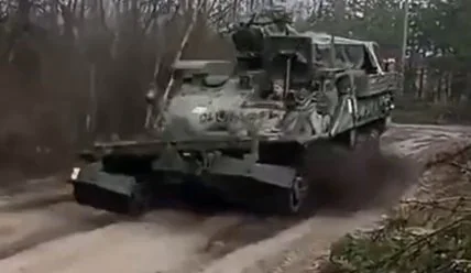 Так, в пятницу, 7 апреля, появилось видео проезда по дороге инженерной машины M1132 Engineer Squad Vehicle на базе колесного американского БТР Stryker.