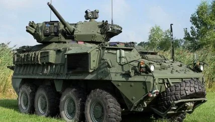 На последних фото, появившихся в сети заметили, что это не только M1126 Stryker, но и M1296 Dragoon – модернизированная версия, вооруженная 30-мм пушкой. Это 30-мм пушка Mk.44 Bushmaster II, а самая башня беспилотная Kongsberg. В этой колесной бронированной машине с плоским дном усовершенствованы некоторые компоненты мобильности, чтобы приспособиться к увеличению веса из-за пушки, установлены более широкие шины.