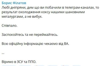 Пізніше мер міста Борис Філатов повідомив, що джерелом диму стала не російська ракета — це були лише сліди охолодження коксу на металургійному підприємстві.