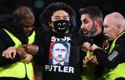 Інцидент стався на 26 хвилині матчу. Фанат з’явився на полі у футболці з написами "Звільніть Україну" та "Зупиніть Путлера". Таким чином він провів акцію проти російської агресії проти українців.