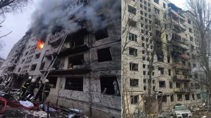 У понеділок, 14 березня, в Оболонському районі Києва артилерійський снаряд потрапив до дев’ятиповерхового житлового будинку.