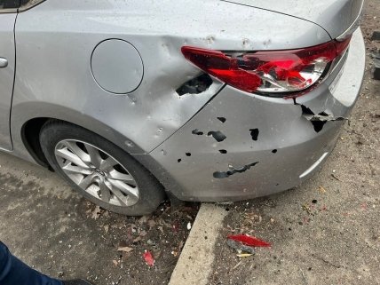 Пошкоджені фасади будівель, повністю знищені вогнем п'ять автівок, ще 15 посічені уламками або частково постраждали від вогню. Поліцейські документують усі наслідки російських злочинів.