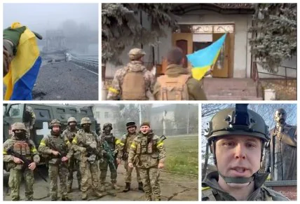 Сьогодні з'явились відео заходу українських захисників у низку сіл Херсонщини. Мейсер Гіффорд, який воює в складі українського батальйону, зняв кадри людей, які вітають війська, коли ті прибувають в одне зі звільнених міст: