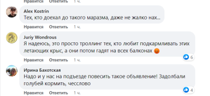 Варто також відзначити, що є й такі, хто переконаний, що таким чином жителі будинку просто хотіли налякати сусідів, які систематично підгодовують голубів, що, своєю чергою, забруднюють навколишню територію. Проте, навіть якщо розглядати ситуацію з цього ракурсу, можна дійти висновку, що автор оголошення розраховував, що його слова сприймуть серйозно, і це аналогічно свідчить про дієвість рашистської пропаганди.