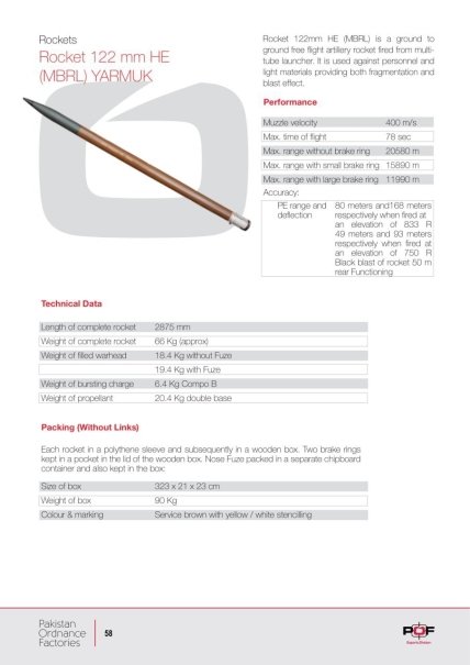 Боєприпаси до артилерії в Пакистані виробляють п’ять заводів, розташованих у місті Вах, два з яких найбільші, здатні виробляти в рік близько 200 тисяч снарядів до гармат калібру 203 мм, 152 мм, 130 мм, 122 мм, 105 мм і 122 мм. "Град" (у пакистанській версії — "Азаб"). Ще у списку понад 650 тисяч хв до мінометів калібру 60 мм, 82 мм та 120 мм.