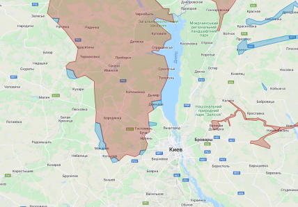 На карті DeepState чітко видно, якого прогресу вдалося досягти в обороні Києва (звільнені території були виділені блакитним).