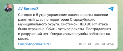 У Брянській області росії ранок почався з вибухів, — місцеві жаліються на ракетний обстріл ЗСУ.