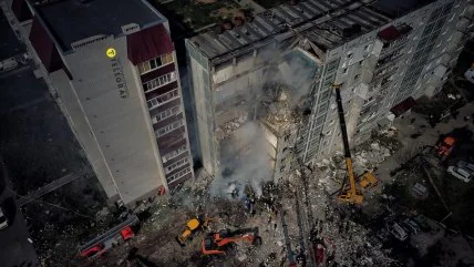 В дворі зруйнованої багатоповерхівки чергують не лише рятувальники і медики, а й психологи — постраждалі та свідки ракетного удару перебувають у шоковому стані. Дехто з присутніх досі не знає, чи вижили його близькі.