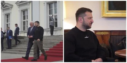 Українського лідера у Берліні зустрів федеральний президент Німеччини Франк-Вальтер Штайнмаєр. Далі у Зеленського були заплановані переговори з ним та Олафом Шольцом.