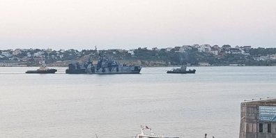 На кадрах видно, як величезний ракетний корабель тягне маленьке буксирувальне судно. Ще одне маленьке судно йде за "Самумом". Це говорить про те, що під час атаки морського дрона СБУ "Морський малюк" ракетний корабель отримав серйозні пошкодження і не може рухатися самостійно.