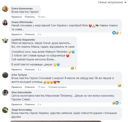 "Максим Петренко – захисник, письменник, популяризатор читання, активіст у просуванні бібліотек, щирий, глибокий, уважний до деталей, таким його пам’ятатиму", — пише вона.