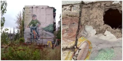 Також у цьому відео Міноборони Великобританії показало мурали з дітьми, зображеними на багатоповерхівках в Авдіївці. Вони пошкоджені російським обстрілом, а в одному з них є дірка від снаряда. Це яскраво описує те, що приніс в Україну "російський мир".