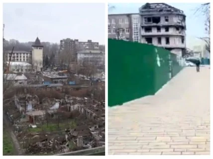 Відео опубліковано в Х-акаунті (колишній twitter) "распад и неуважение". Зйомки ведуться з авто, що рухається. У кадр потрапили зруйнована приватна забудова, яка тепер непридатна для життя і нагадує кадри страшного кіно. Також можна побачити "Азовсталь" — раніше потужне виробництво, яке також знищено росіянами. Окупанти збудували невелику кількість будинків, для картинки нібито відновлення Маріуполя, а за ними — суцільна розруха.