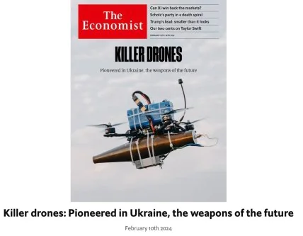 Про це пише The Economist у матеріалі, який винесено на обкладинку свіжого номера. Зазначається, що дрони коштують недорого, на відміну від американських артилерійських снарядів з gps-наведенням коштують 100 тис. доларів за штуку.