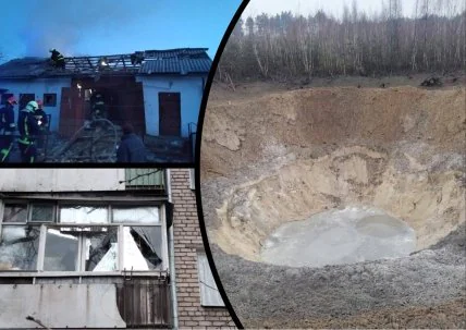 На Київщині після падіння збитої ракети утворилась величезна вирва, а також є інформація про пошкодження близько 40 приватних будинків, кількох господарських будівель та автомобіля.