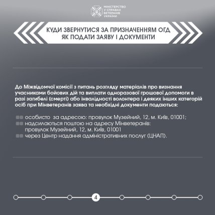 Наразі члени сім’ї загиблих або військових, що отримали інвалідність, можуть подати заяву на призначення виплат не тільки в паперовій, а й в електронній формі. Зробити це можна, в тому числі через Центри надання адміністративних послуг (ЦНАП). Крім того, документи можна не подавати, якщо вони є у розпорядженні Міністерства ветеранів або перебувають у відповідних реєстрах.