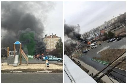 У мережі публікують кадри з наслідками обстрілу Розумного, над селищем здіймається дим. Спалахнула пожежа на парковці, пошкоджено автомобілі. У будинках місцевих мешканців вибито вікна.