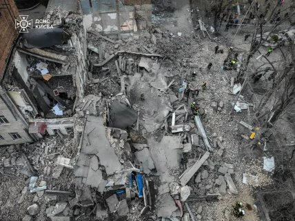 "Поруч зі зруйнованим приміщенням державного учбового закладу знаходиться гуртожиток, де було чимало людей. На щастя, там руйнувань немає і ніхто не постраждав", — повідомив мер столиці Віталій Кличко.