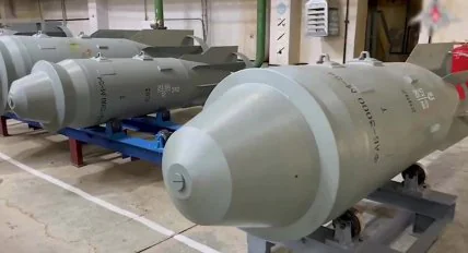У російських джерелах вперше показали, як виглядає авіабомба ФАБ-3000 з універсальним модулем планування та корекції (УМПК). Завдяки цьому тритонні бомби можуть летіти на значну відстань.