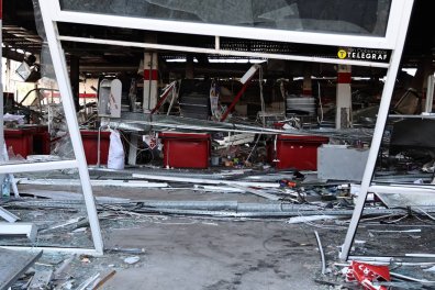 Про це повідомляє кореспондент "Телеграфа" Ян Доброносов із місця подій. Від ще вчора працюючого супермаркету залишилася купа металобрухту.
