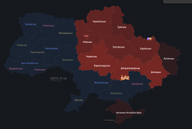 Наразі повітряна тривога є у 8 регіонах країни включно з Києвом. "Телеграф" нижче показав карту, які області почервоніли.