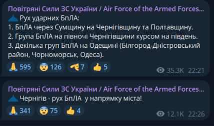 Крім того, в повітряному просторі України ворожі дрони, попереджають Повітряні сили.
