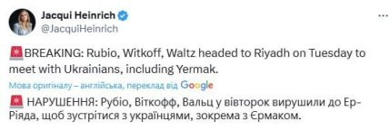 "Зараз ми ведемо переговори про те, щоб скоординувати зустріч із українцями в Ер-Ріяді чи навіть, можливо, у Джидді", — заявив спецпредставник Трампа з питань Близького Сходу Стів Віткофф.