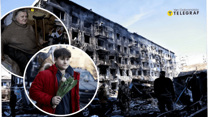 Водночас в об'єктив кореспондента потрапив хлопець, який, попри трагедію та смерть 11 осіб внаслідок обстрілу, все одно ніс комусь квіти до 8 Березня.