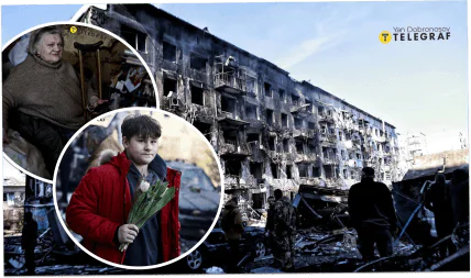 Водночас в об'єктив кореспондента потрапив хлопець, який, попри трагедію та смерть 11 осіб внаслідок обстрілу, все одно ніс комусь квіти до 8 Березня.